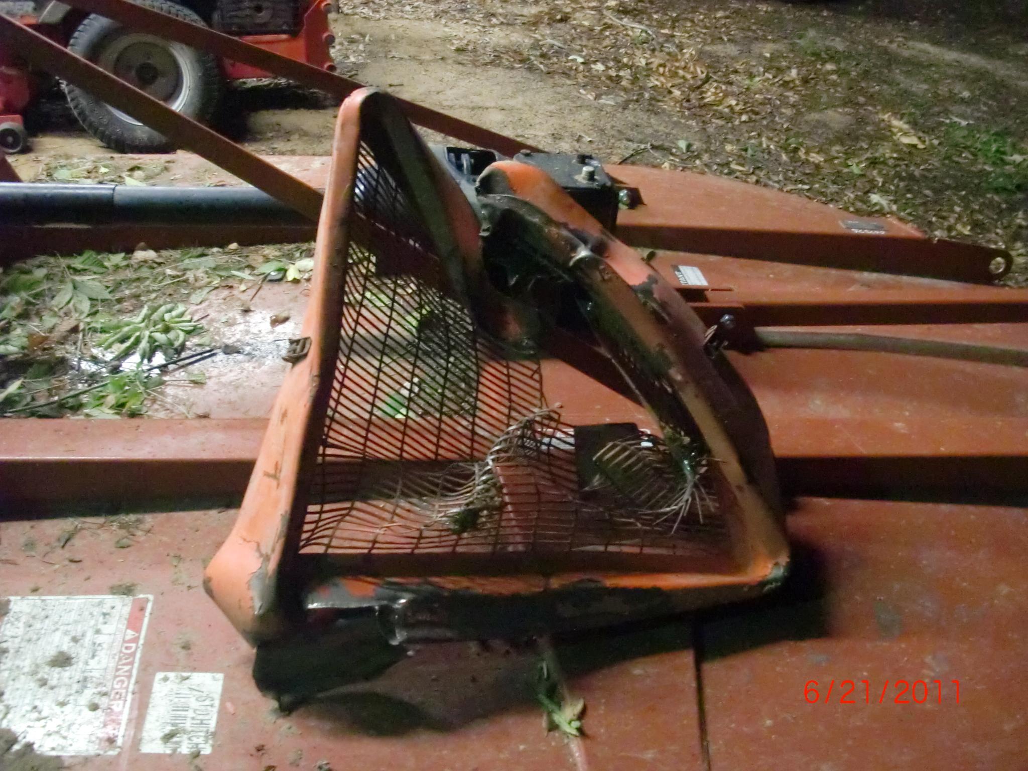 Don't feel like the lonely ranger. Mowers and grilles are not always compatible, and discs aren't much better. My 180 grill popped off when I hit a washout and the disc nailed it before i could stop.
