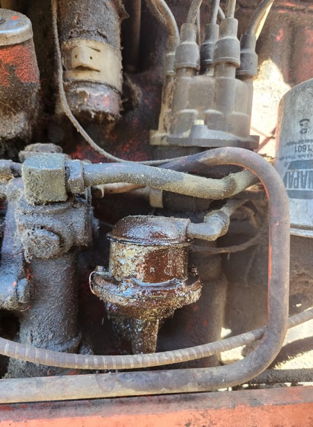 I went and started up the good ol' 1968 190XT (Series 2, I think) today to get some bush hogging done. It hasn't been started since this spring for plowing. I checked oil and all that good stuff, put in a fresh 20 gallons of gasoline. It started up just fine as it normally does, no issues at all. However, I noticed a fuel leak from what appears to be the fuel pump. I found what looks incredibly similar in the service manual (Page 194, see attached), but I believe it's a little different. The manual also says the G-2800 could have a carb, but it looks nothing alike. I will attach two images as well to show the component/leak. When I first started it, the leak seemed like a lot. The radiator fan was blowing back against it and causing the fuel to spray all over, so it was very hard to decipher where the source was. I decided to at least let the engine warm up completely at idle (2,500 RPMs) before shutting it back off. Once it had run for about 15-20 minutes, I checked again and the leak was much less severe. I could also now tell that it was coming from what looks to be a relief hole in the lower-half (see attached). If I covered the hole, the leak would stop and the engine appeared to run exactly the same. This is where bad ideas happen. I decided to plug the hole with some putty to get me through the brush hogging, and then I would dismantle it later and repair it properly. I went out bush hogging for over an hour with zero leaks or issues. Then I had a small hiccup in RPMs. It only lasted a couple seconds and went away. A little bit later the engine did more than hiccup and stopped. I shut it all off, turned off the PTO, etc. Restarted the engine and it idled just fine. I put it in gear to drive it back to the house and it died as I let off the clutch. I am assuming these two are related. I currently have it sitting in the field. The putty is still in place and sealing the leak effectively - which I realize may be the cause of my current issue. When I first started the engine today, it appeared the leak was from somewhere on the upper half of the fuel pump, but later, after it died down, it was only from this relief hole. Would anyone have any insight as to what the original issue was, why it changed as it warmed up, and why it shut down after over an hour of running hard? Thanks! |