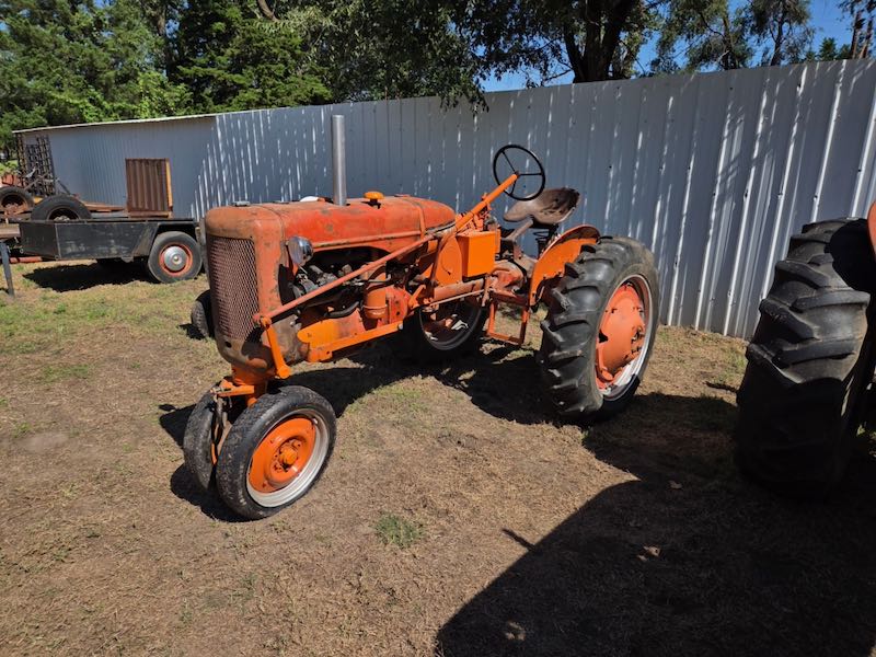 Then a random guy comes up to me and asks me if I want another C for the same price. He lives close by. I check it out and decide it is also worth the money, even though it hasn't run in two years. I drive back up the next day with my trailer and load them up. The auction C is a 1943 and the guy used it as a puller. The 28" rears are interesting. I drove it onto my trailer and other than some minor leaks and the usual non-functioning brakes, it seems pretty good. I think it will be a good match for my 11x7 John Deere FB-A grain drill, and for jockeying equipment around my back yard. Maybe I will put 24" wheels back on it and find a cultivator for it someday. ![]() ![]() The other C is loose and has quite the homemade 3 point hitch and hydraulic pump setup on the rear. It's a 1947. Ironically the brakes work in that one. I also found a plaques from a couple different local pulls on it, so it was also someone's puller once upon a time. Then I noticed some junk in the bottom of the grille and it turns out someone stuffed some lead weights into it. Those need to go before they damage anything. I have never had any interest in pulling but I guess if I ever have any downtime I could give it a whirl with the '43? ![]() ![]() |
