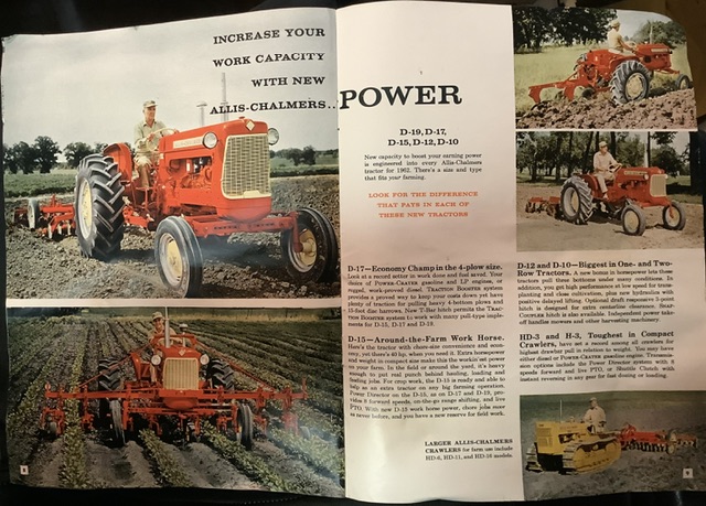 I don’t ever remember Dad receiving brochures in the mail. The AC Landhandler magazine was always in our mail though. Per the mail, most if not all farm publications(Prairie Farmer, Farm Journal, Successful Farming, etc,,,) had loads of AC “artwork ads” or “color photo inserts stapled into publications. Yes, I had to ask Dad if he was done reading that issue before he’d allow me to unstable those beautiful color photo inserts from publication, rendering the rest loose.