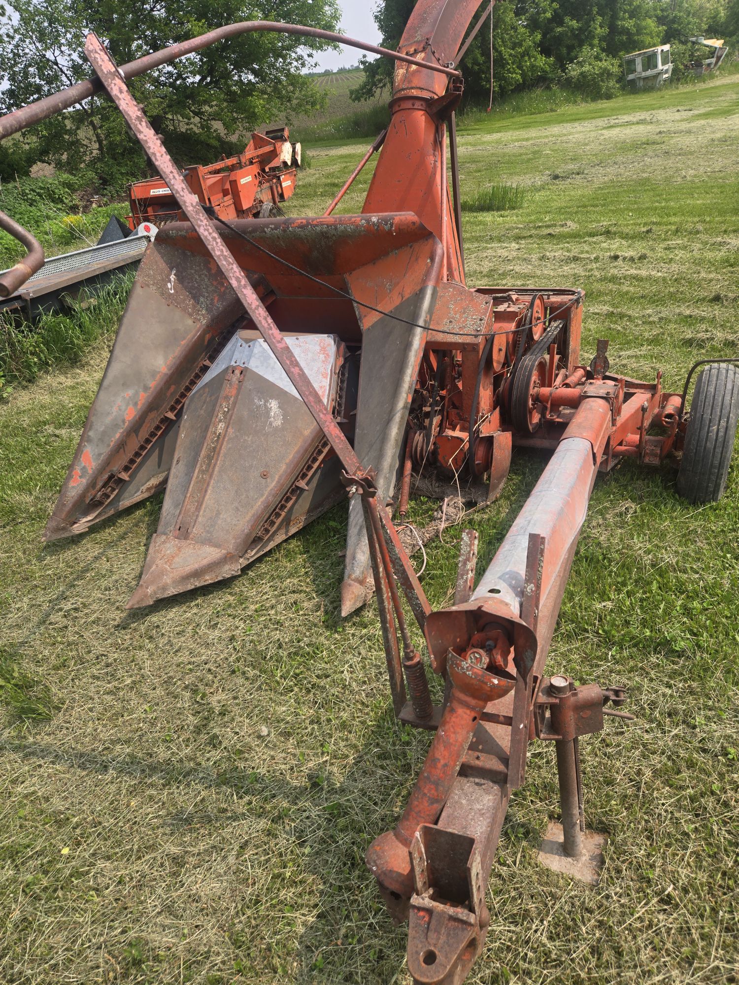 Allis Chalmers 780 chopper i saved from the junk yard. Has been sitting along time, but is very solid, not rusted out. Hasn't been used much, still has original paint on the drive chains. Only have the 2 row corn head with it. Serial # 136. Asking $500. Can lift onto a trailer with a forklift, about 9ft wide. 952-290-1063