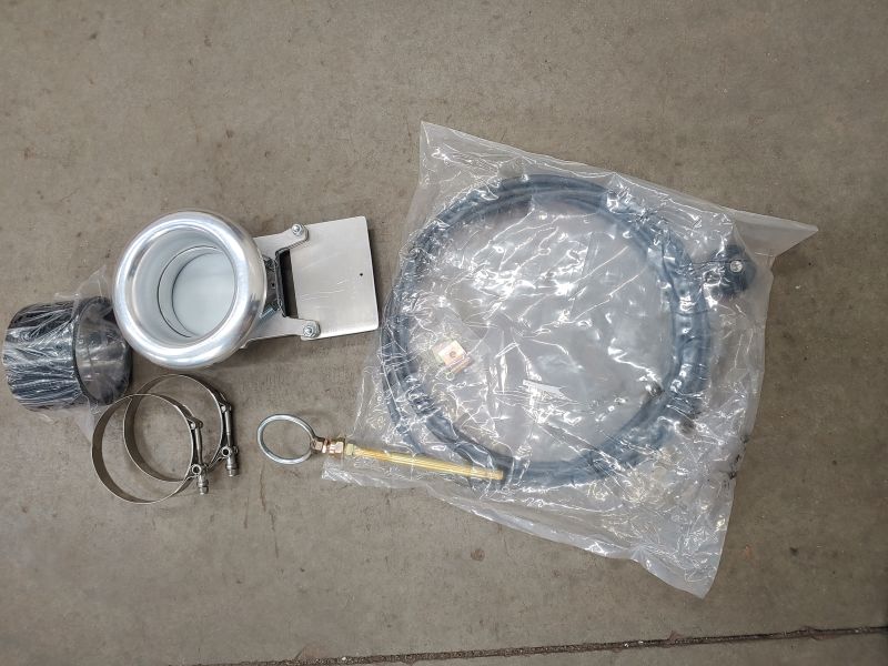 Air shut off with cable and hose/clamps. Fits four inch turbo inlet. 15 foot cable with ring.