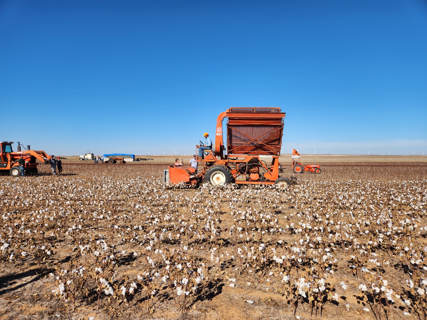 ![]() Here is a picture of what's inside the pod or bole. 4 or 5 chambers on the pod each with 2 or 3 seeds in it . Cotton Strippers are more like rakes in that they rakes the pod loose . The machine cleans it some and then it dumped into a module builder ( smasher) and then the mill comes and hauls it the the gin mill for the final processing before a textile mill would purchase. Pretty neat process for someone who has only been around beans corn and wheat. |