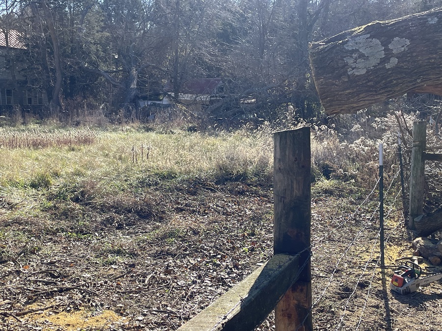 continue the haul off tomorrow. The Two low Hangers are actually Trunk risers separated from the main. Widow Makers Progress was SLOOWW!! Spot of blue beside my little saw was one of Two honey locust buried in that mass mess. Then today as I closed up For The day Main Saw is a MS290 18", the Little Bugger is a MS192TC, really like the both of them although the bigger is almost too small for some work. The Ground inside that fenced area is NOT ours, is part of the remnant 4ac the previous owners son owns, We bale and keep it mowed, He has ZERO ambitions to do anything but Live There. He has a 40+ in Elm in his yard that split similarly, half is laying on one of his Junk Cars, the other half is precariously balanced on his Well House. And NO, I have NOT offered to help remove, He has ZERO Cash and ZERO Insurance, want to be no further on his plot than had to be here.