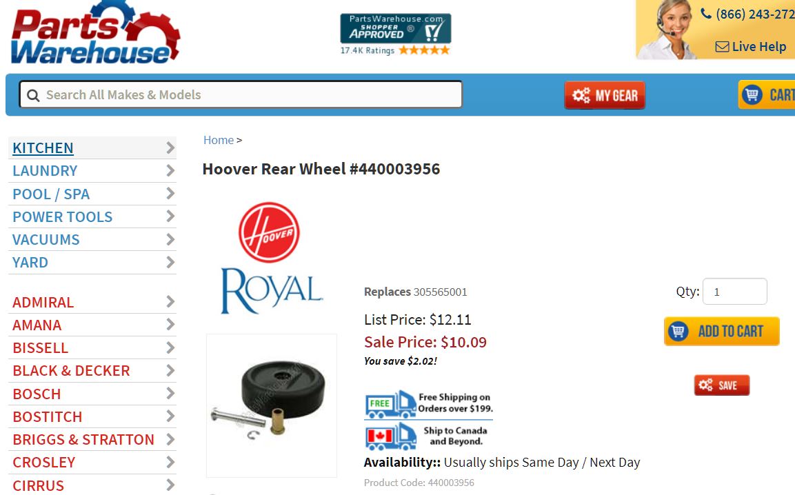 Hoover UH70210 wind tunnel vac. The wheels are all worn out axle wise and and need to be replaced. I am sure the original part number is 304233001. Al i get is discontinued for new ones. I did find a used set but the price was ridiculous. Would you give your magic search? Thanks Steve, I ordered one of those wheel sets you posted about. Only diff was the axle diameter to accommodate the bushing. Got the other side on order now. Thanks