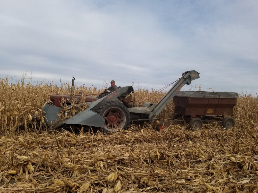 I pick 3 gravity wagon loads for our local tractor club (Warren Area Antique Tractor Club) which we will shell next Summer at our show 4th July week end. Waiting on corn to get drier before I pick with D-15 ser. 11 and Oliver no. 5. Picker butt shells a lot because these newer hybrids are bred to shell easy. We shell with an old resurrected MM sheller, don't know model.