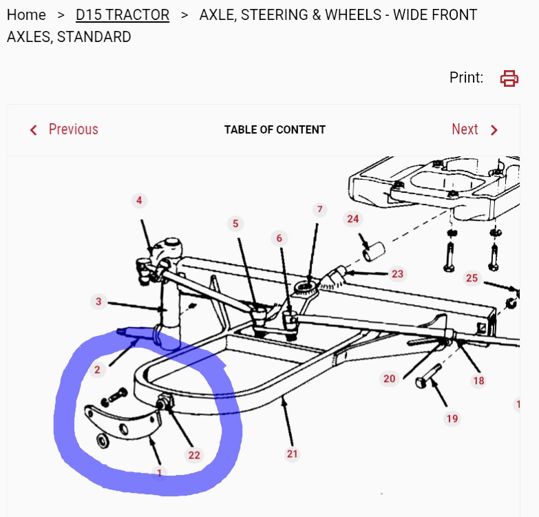 The previous owner of our D15 Series 1 had four nuts as spacers positioning the wide front axle pivot bracket closer to the front of the tractor (away from the housing). I searched the D15 AGCO parts book online and cannot find the pivot bracket I have so I'm not sure I have the correct bracket. If I do have the correct bracket, I'm not sure if there was a plate or factory spacer that got replaced by the previous owner with nuts. The biggest issue with this is the little amount of threads that go through the pivot bracket do not allow the castle nut to thread on enough to install a cotter pin. Any thoughts on if this is the correct bracket for this tractor and if I'm missing a part that the nut spacers replaced? Photos of the bracket on the tractor and off are below. Thank you!