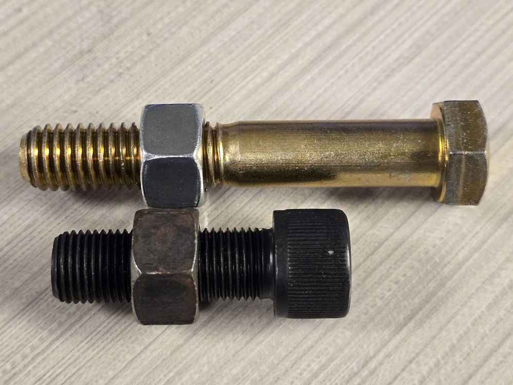 I grabbed a coarse as well as fine thread bolt with nut from the shop. In my picture of the clutch rod I count 10 threads past the nut (not counting the chamfer lead). I threaded each nut out the same number of threads. I agree, it appears to be fine thread.