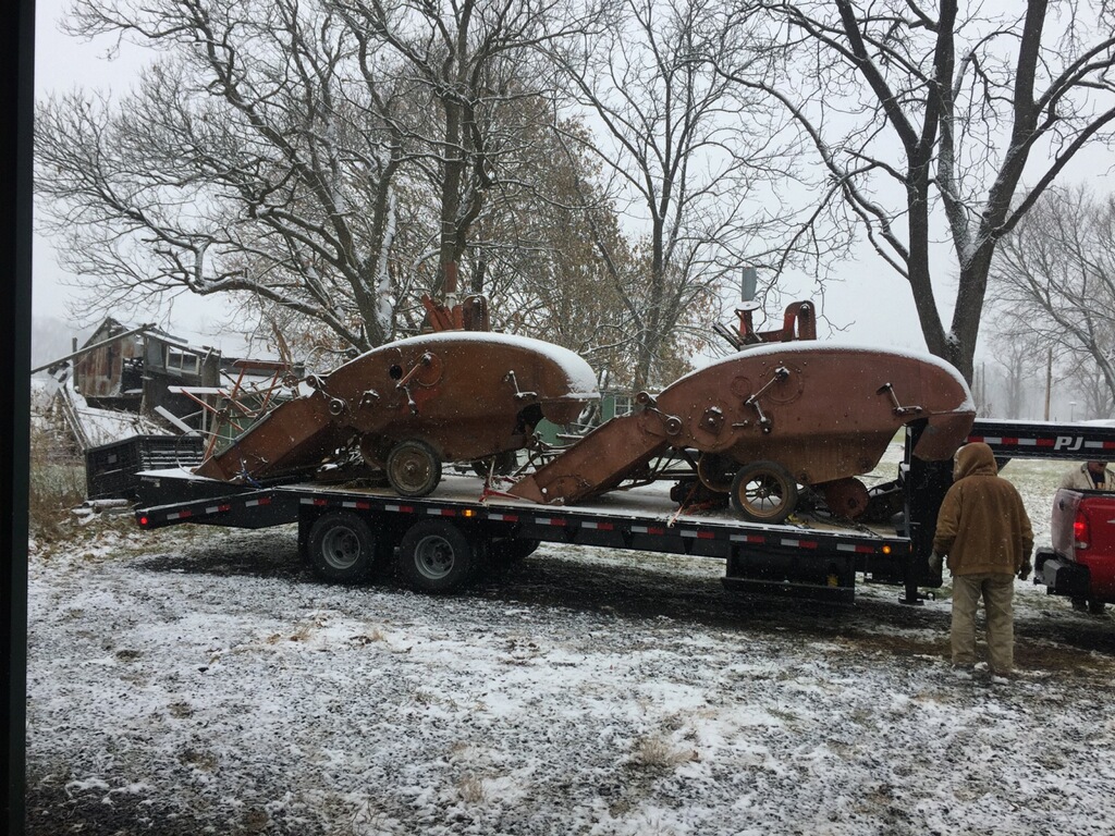 We had Dennis from the forum here....his handle is (Dennis IL) do some hauling for us this past fall. He drove from his home near Ridott,IL to the east coast to bring back two All Crop 40 Harvesters for my Friend Calvin and I. He hauled them back here to NE SD. Couldn't of asked for anything better, the load showed up here and was chained down good and smart.....nothing was being crushed by a chain and binder or ruined when it arrived. It's nice to have someone to haul something who understands how old and sometimes fragile this stuff is! I would recommend him to anyone who needs to get something from point A to B and not have to worry about it. It's easy to hire someone to haul something but the question is...What's it gonna look like when it gets here. Great Guy, Great Service! Give him a ring...(815)-742-0823 Thanks again Dennis! ![]() |