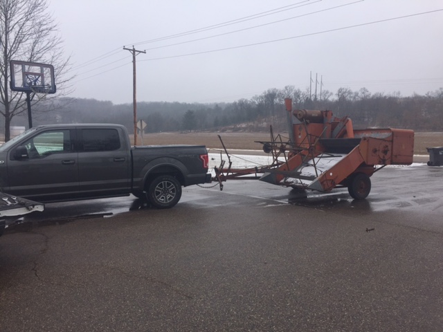 Got it just north of Amherst in central Wi., which fortunately for me was only about 10 miles from my house. Needs a new lower draper, the reel rebuilt and the concave patched (has some holes). Been kept outside for the last few years so some rust holes are not a surprise. Got it for $400 which I'm not sure if that's a decent price for around central Wisconsin or not but being close made it a lot easier to spring for it. I'll be using it this summer/fall on some oats, soybeans and going to try it on sunflowers (trying to lower my chicken feed costs).