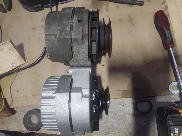 Like always, things aren't straight forward for me as they should be. I bought the 10Si and it is not exactly like my alternator. I pulled off the pulley so that the same belt could be used and there aren't enough threads on it to put the nut on. Here is the new alternator with old pulley. ![]() Here is what it looks like on old alternator with old pulley. ![]() If I tried to use the new alternator with the new pulley, the belt would be out of alignment since the shaft is shorter than the other one. This picture shows the difference. it is about 1/2 inch shorter. So, I guess I am going to have to get the old one rebuilt? I don't want to keep buying other alternators without knowing the shaft length, only to have the same problem. Anyone got any suggestions? ![]() |