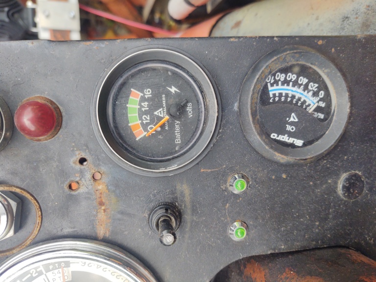 seems wrong or missing another wire. 12) If I want proper alignment of the Alternator/Fan belt I may need to apply shims to make the pulley get aligned. I think the current alternator is slightly out of alignment but not that bad. So, I am going to get Alternator rebuilt and go from there. Thanks to everyone for the help figuring out this setup. Tough when it gets changed into something that is not in the parts book. Let me know if I have anything wrong above or should go in a different direction. Here is the voltage gauge that I have and it works although the alternator wire is not properly attached. Is this gauge a 190Xt gauge or from something else? Seems I didn't see this in the parts book. It says Allis Chalmers on it. That non-standard switch and led lights in the middle is a turn signal switch and signal indicators that I installed in case you are wondering. The oil gauge is connected to nothing so I think it was going to be a future improvement that never got done. ![]() |