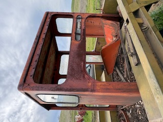 I scored an HD 11 cab the other day, I believe it to be an OEM cab. Lots of busted missing glass but that is to be expected and most of that was from when the guy removed it from his 11 some 30 years ago, he was very upset that the cab had rubbed a hole in the fuel tank so he just pushed it off over backwards to the ground, I am surprised that any glass survived at all. I want to do some changing on it, the doors are sliding doors and not in very good shape they will have to go and the area above the fuel tank is raised about 7 inches to allow for the BeeGee pump levers over the tank, it makes it hard to see the hitch, so I will remove that sheetmetal and extend the glass lower and run the levers under the seat. There will need to be something done about the fit around the fuel tank as well.