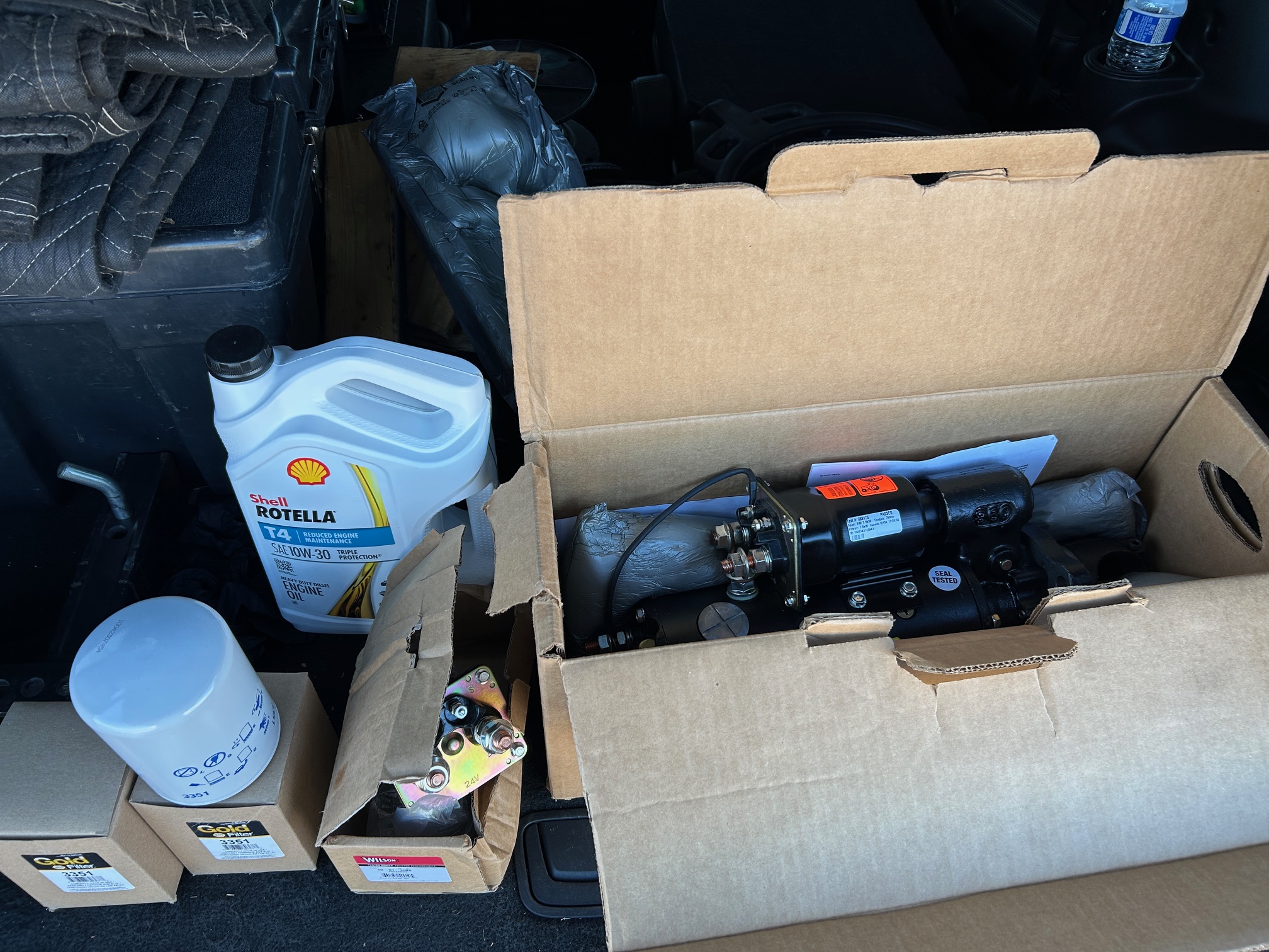 Dropped $700 at Napa today - remanufactured 24v 40MT starter, a 24v solenoid for a 40MT starter, two fuel filters, and a gallon of Rotella.