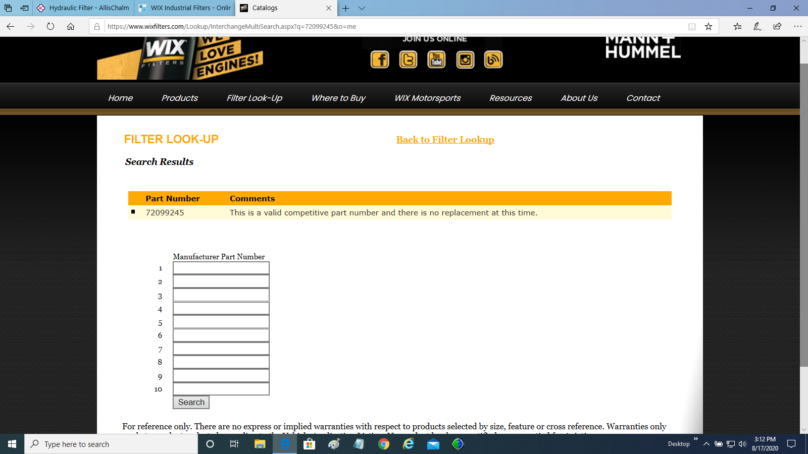 That Is The Engine Filter He Asked For Hyd Filter that Part # Is 72099245