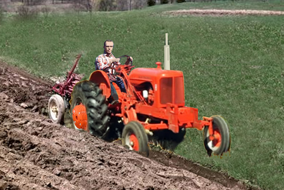 Dad bought a WD new in the summer of 1953. In the fall of '53, the dealer came out from Oelwein and said Dad could trade for a WD-45 for $600. Dad didn't think that there could be that much difference. There was! Dad always regretted that decision. The dealer held a plowing field day in a 40 acre field on the East edge of Oelwein for the WD-45 , probably in late September. He couldn't get an A-C Snap Coupler plow, so he had to use an IH Little Genius pull-type 3-16's plow. There were 4 A-C wheel weights on each back wheel of the WD-45. The block man told me to go in third when it was my turn to plow. Plowing at 5 miles per hour made me think I was flying after being used to plowing in low with the WD. ![]() Today that 40 acre field is home to a big Lutheran Church and a lot of houses. The picture is Photoshopped, but it would have looked very similar to the actual plowing demonstration day. ![]() |