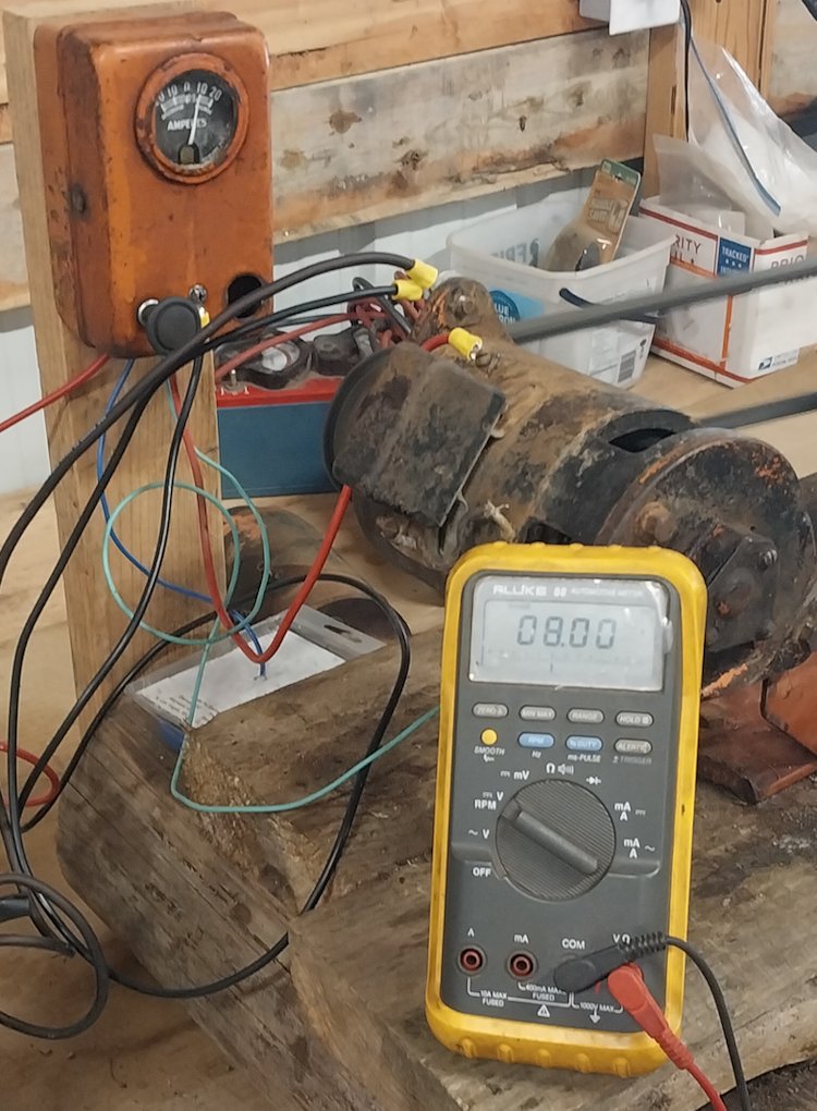 No, that is not a typo, this gadget truly is a one-wire generator. ![]() I have several old generators (thanks ORBill) that I am finally getting around to testing. This unit is a third-brush type and has no provisions whatsoever for controlling the field current; a quick google search for the part number 943U shows that it is for a 1931-34 Studebaker. Some further searching led me to a Studebaker forum where I found schematics that clearly show this generator having only one wire leading from the armature to the cutout relay. The amazing thing is that it actually works! I realize that I am probably the last person on earth to learn that this was at one time state of the art technology, but I have always been a bit slow on the uptake ![]() ![]() 8 Volts at ~8 amps ![]() ![]() My high tech generator test bench