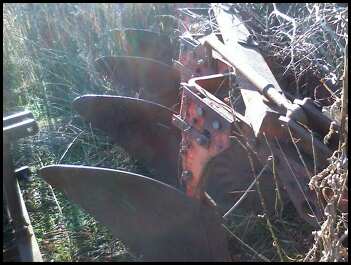 Disc tiller plow, needing new home, would look cool behind someones D-series, offers around scrap iron price entertained, "roll" right over the rocks!, have all parts available, needs some finish work on trailing wheel.