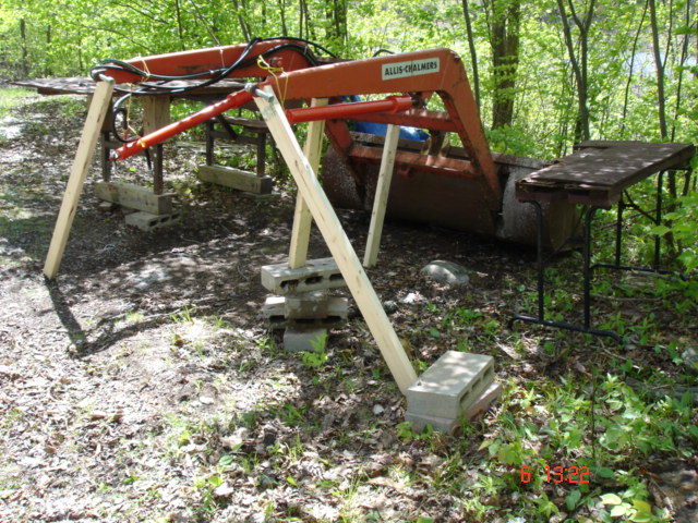 I thought I'd ask before starting. I have to remove the loader. I am alone and don't have a tree branch available. This loader does not have the swing down arms to hold it while the tractor is backed out. I am wondering about using a 2X6 on each side notched to hold the arms. Thanks, Dave