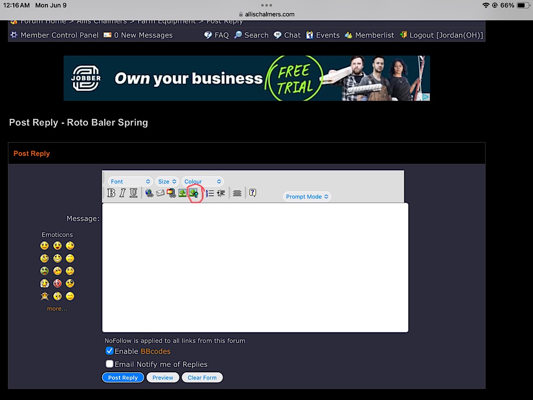 I see nothing to hit to load a picture off my computer.  I also notice there are very few pictures posted on this site compared to many others I visit.