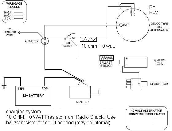 That diagram is a pretty simple diagram. The only thing I would loose is the ballast resistor and install a coil with the resistor built inside so Mother Nature doesn't mess with it. Speaking of coils, 4 cylinders on 12V's need 2.7-3.3 ohms of resistance in the ignition circuit, so a 3.0 ohm coil will fit the bill. Also, Alternators and Ammeters don't mix well. A Voltmeter is much safer. With a Voltmeter the wiring would be run a little differently.  Any questions drop me an e-mail. Be glad to help ya out if you decide to change over to 12V. I also offer complete 12V conversion kits to if interested....