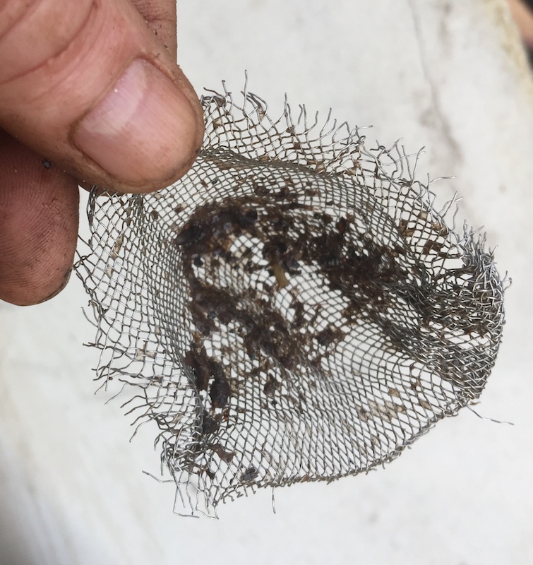 Here is my DIY coolant screen filter I jammed into radiator the inlet to catch junk. This is after the second run and has about 1/4 as much stuff as after the initial startup.