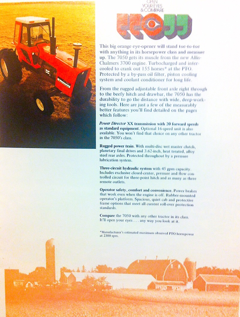 That was a big jump for Allis! Always thought the 7000 series were sharp machines, wasn't many around my area, as I got out in the world more there was one that had Powershift trouble and all the Green guys always talked about that, not about the cams going out on the sacred green machines! Lol