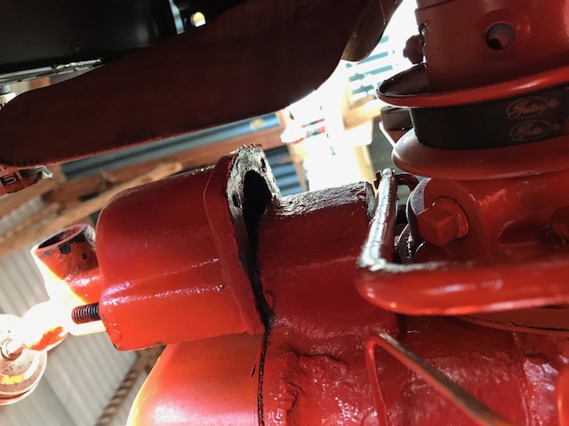 First I believe the housing should be held on with 2 long bolts. Someone used all-thread rod(one 2 inch longer than the other)and 2 nuts at the top. This is minor of coarse, but the rods seemed tight. I hope the holes aren't striped out and they JB welded them in.