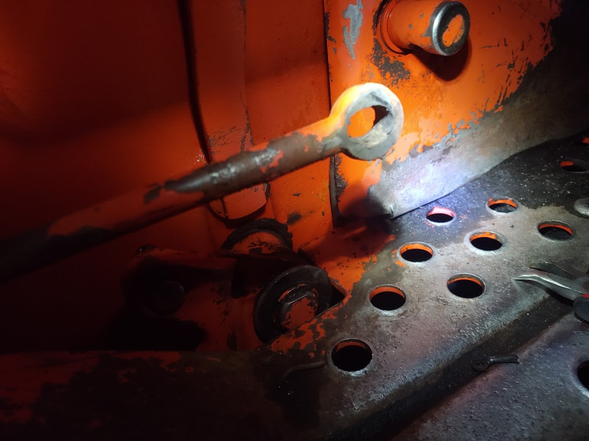 I do know that the clutch doesn't engage until about the last two inches on the top side of the travel. Meaning if I'm in gear and letting out the clutch the tractor moves when the pedal is 2 inches from the end of travel. Meaning the majority of the movement isn't doing anything. Does this seem right? I looked at my clutch pedal, and it seems like the linkage is worn. Are they supposed to be oval, like you see in the picture? Sorry for the blurry picture, it was getting dark.