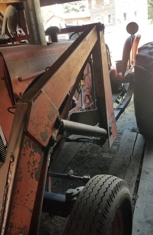 Front end loader didn't look damaged apart from the typical bumps you see on the bucket. It just looked like it was reinforced with ugly welds. PO claimed he bought it that way over 30 years ago, someone added a bunch of extra gussets while trying to learn to weld apparently. If you shake the bucket side to side it feels tight and makes no noise.