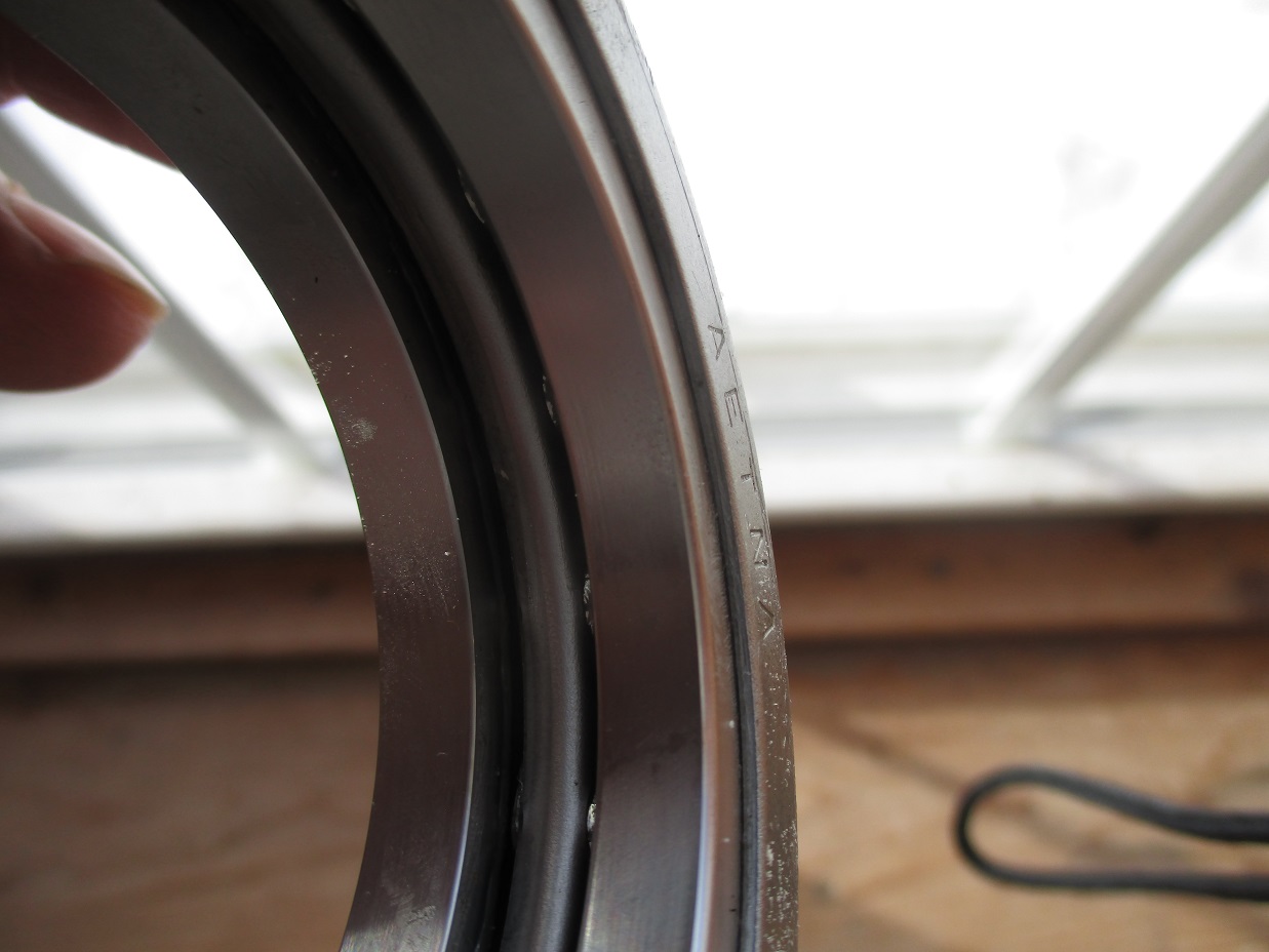 The bearing fits tightly on the carrier. I brought it to the local tractor shop today. He feels the bearing was pressed on way to much. He noticed marks where it was pulled back. So it crushed the inner race. The race on the very inside is the loose one. I have a Federal Mogul bearing # 2065-18 on there now. Outside diameter is much greater.