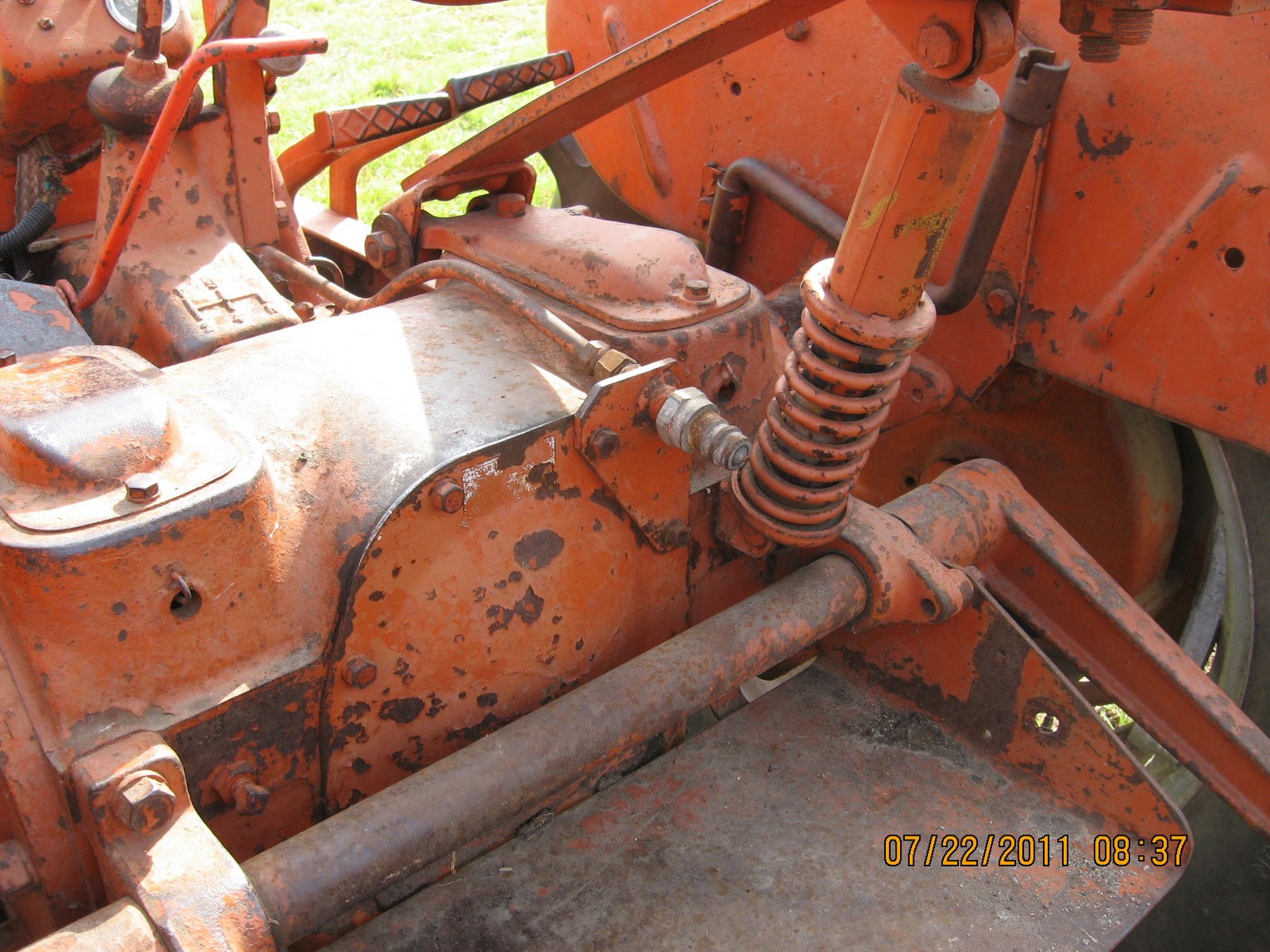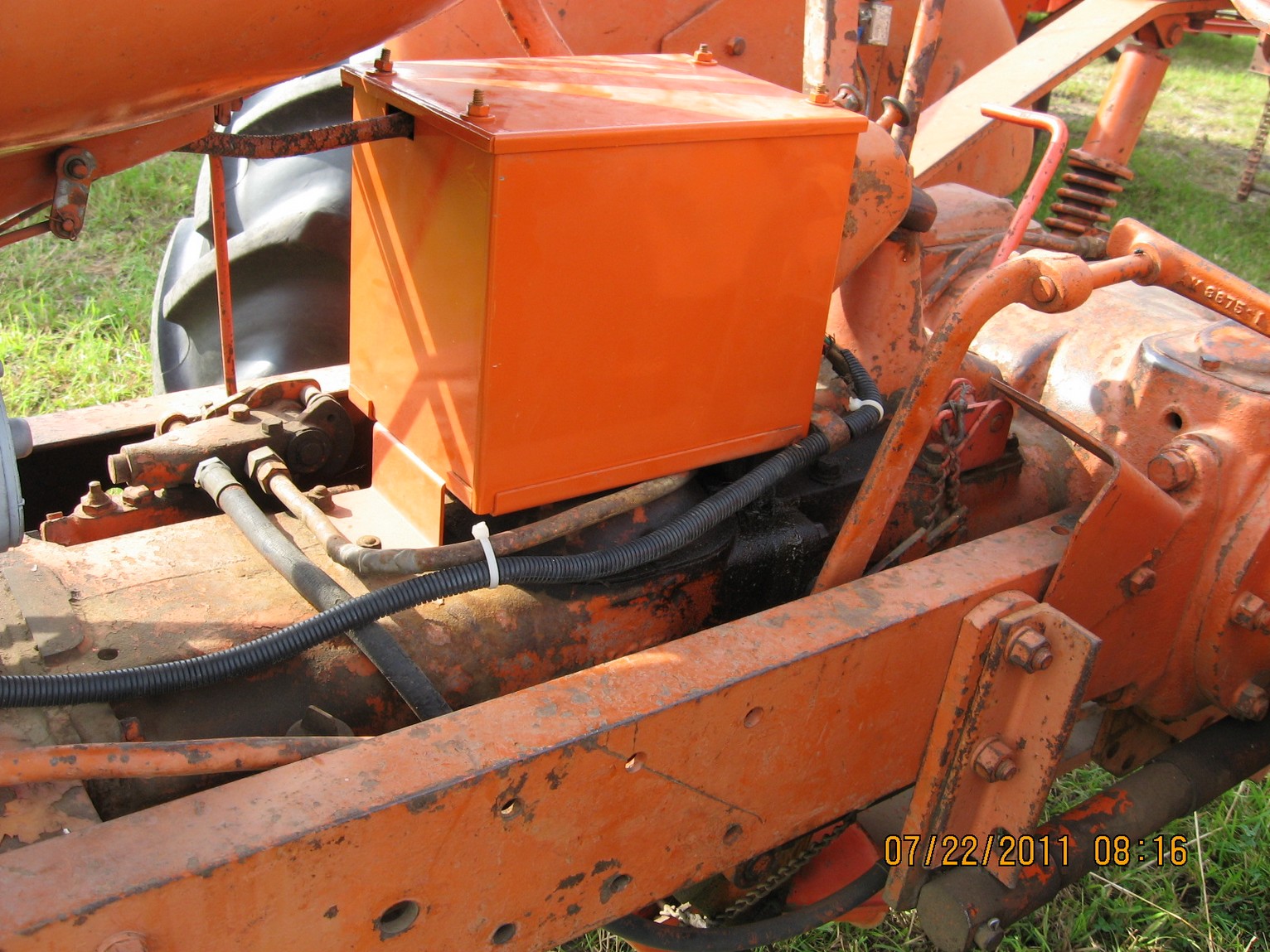 Thought I'd post a picture of an auxiliary hydraulic set up on a WD - I was at the Orange Spectacular in Hutchinson this weekend and took some pictures of tractors with this setup so I thought I'd share, just in case there are some others out there that had never seen a aux setup before ... like me.  The stock aux line is closest to the battery box and runs under it and to the back - see pictures.