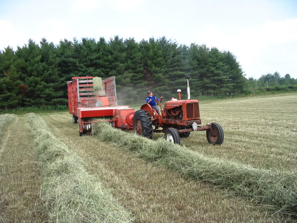 As I sell hay cord wood and lumber my " play " money increases the fleet. I've found by having a tractor for each task, I don't tend to lose the hitch pins, so in the long run I'm saving a fortune in pins! The d-17 gas with a 3 point runs the disc mower, the WD tedders and the C rakes. The picture shows the D-17 d IV baling. The WD-45 is now a puller as well as the WC and another C. Gramps B is now geting an overhaul and it will find a purpose. Now I need just one more...........