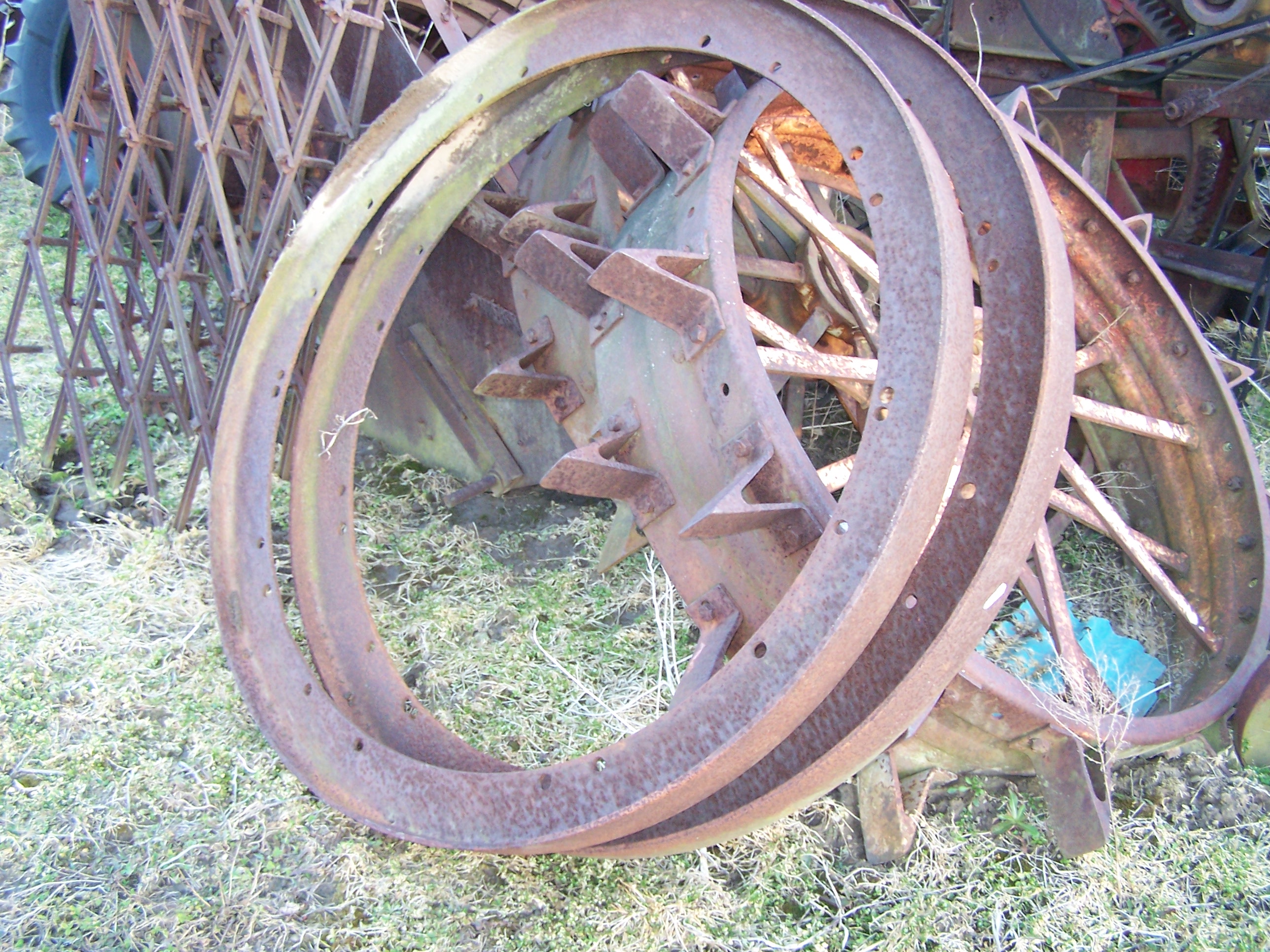 Thanks for the pictures.  I have a choice of purchasing the standard wheels with the 6" face and spade lugs, or the skeleton wheels with cast lugs.  Both have the same F&H casting number...same as my cut-offs.  I wanted to get an idea on what the road bands consisted of before making a choice.