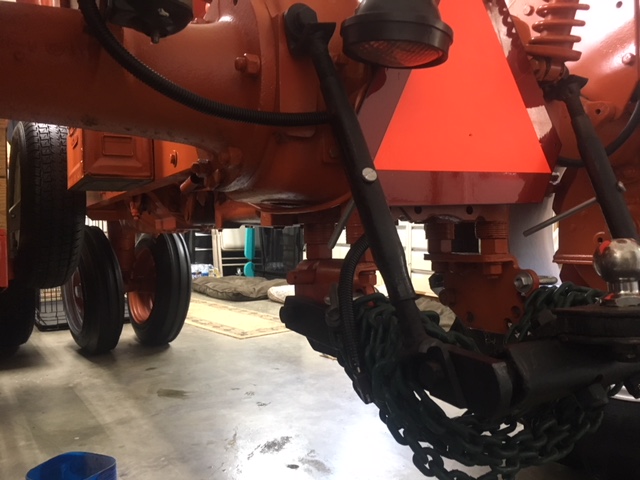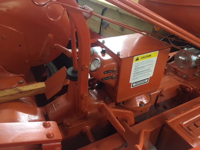 Without a doubt the drawbar is not original. He rewired the electrical harness to add a fuse (seen on top of the box) and add lights for the wagon he pulled neighborhood kids in at Holloween. The current owner did those switches on the side of the box unrelated to tractor pulling.