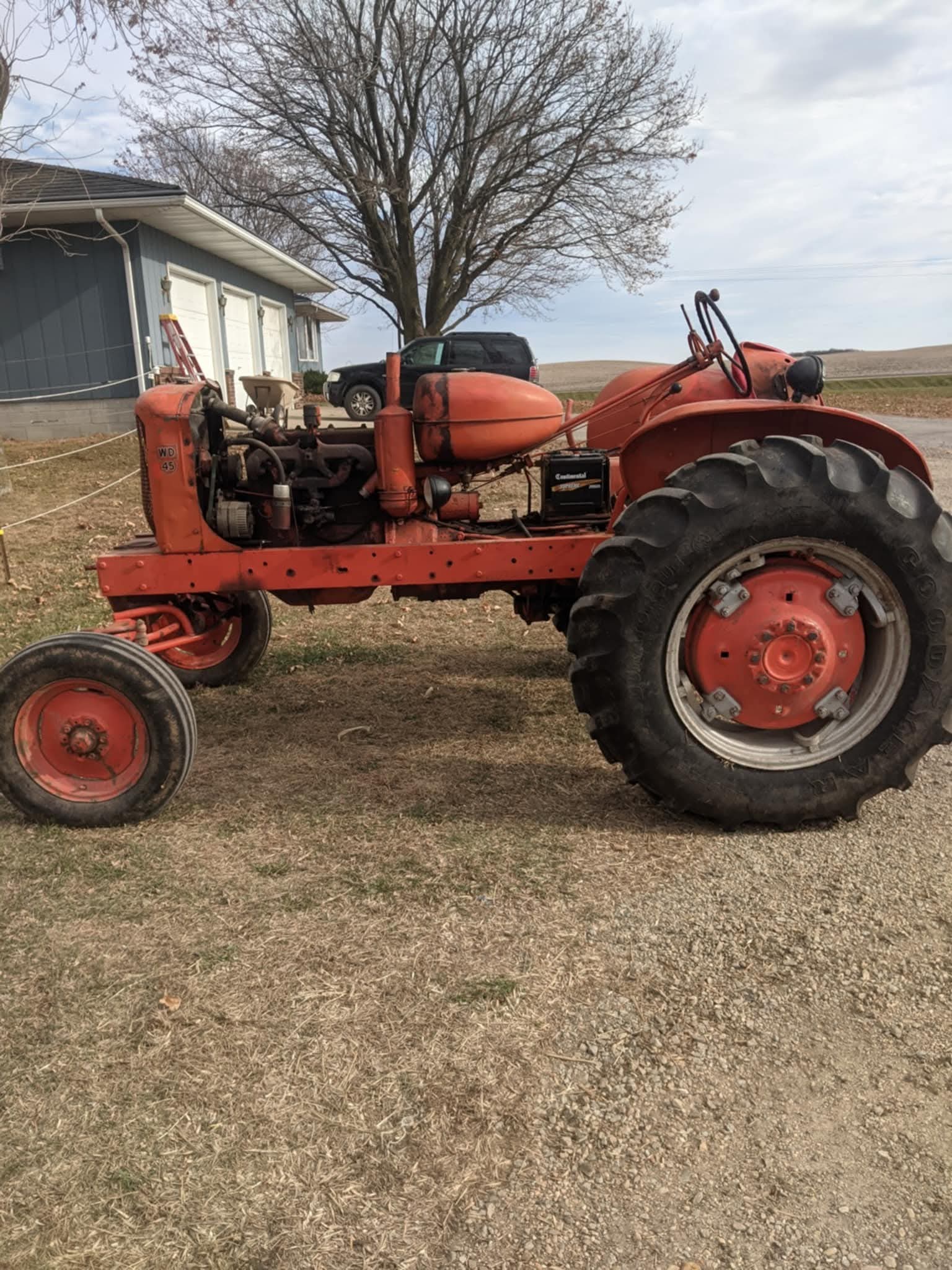 D17 and Wd45 gas in for parts. Both have like new rims and tires on them. Both engines run great. Both have nice Fenders. D17 has a good power steering pump. Nice wide front on the Wd45. Message me or call 952-290-1063 with parts needs.