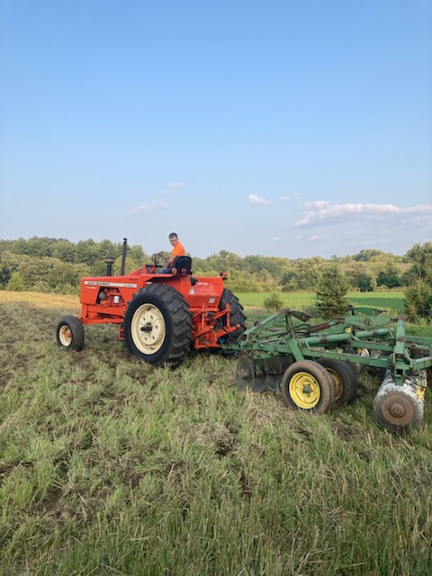 D -17 IV with 7ft disc mower cut former cattle feeding yards now seeded to brome.