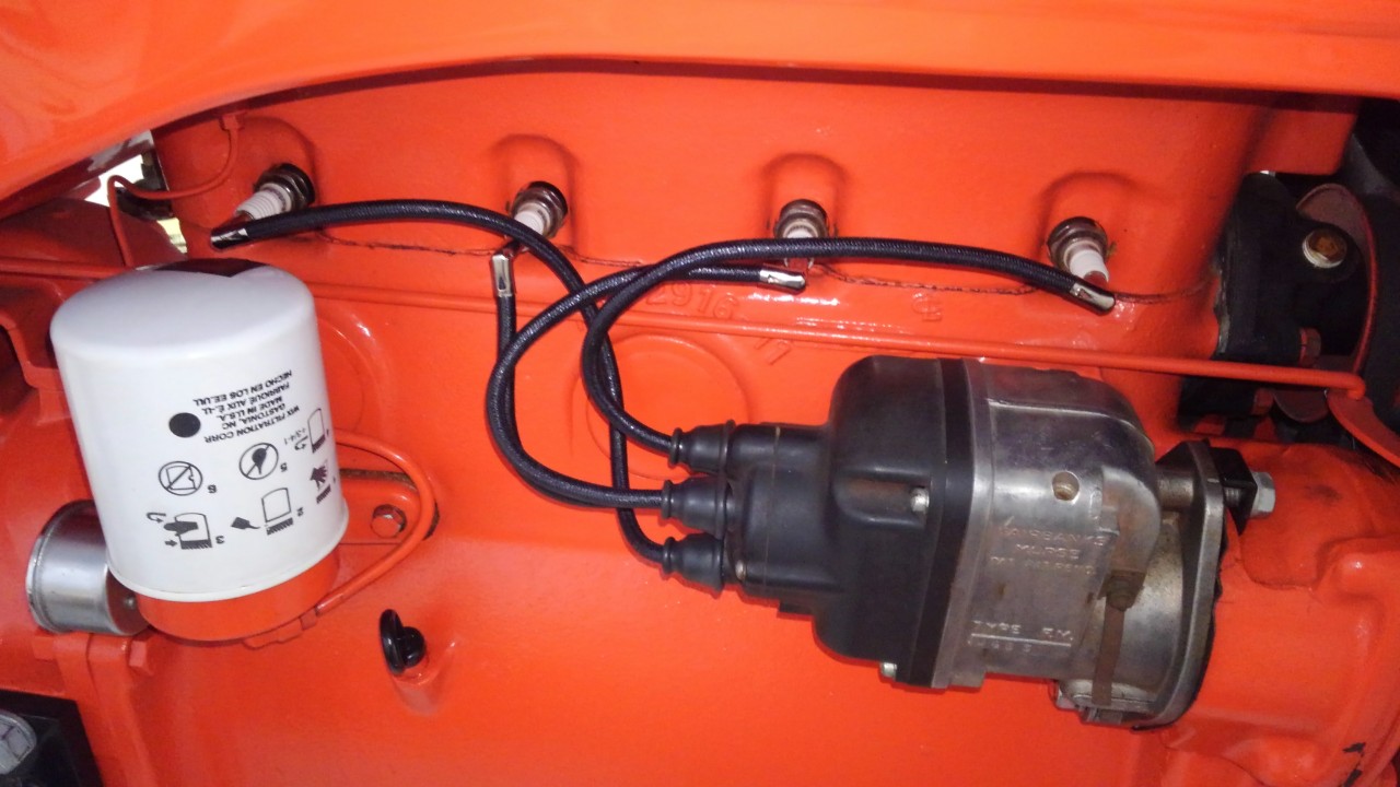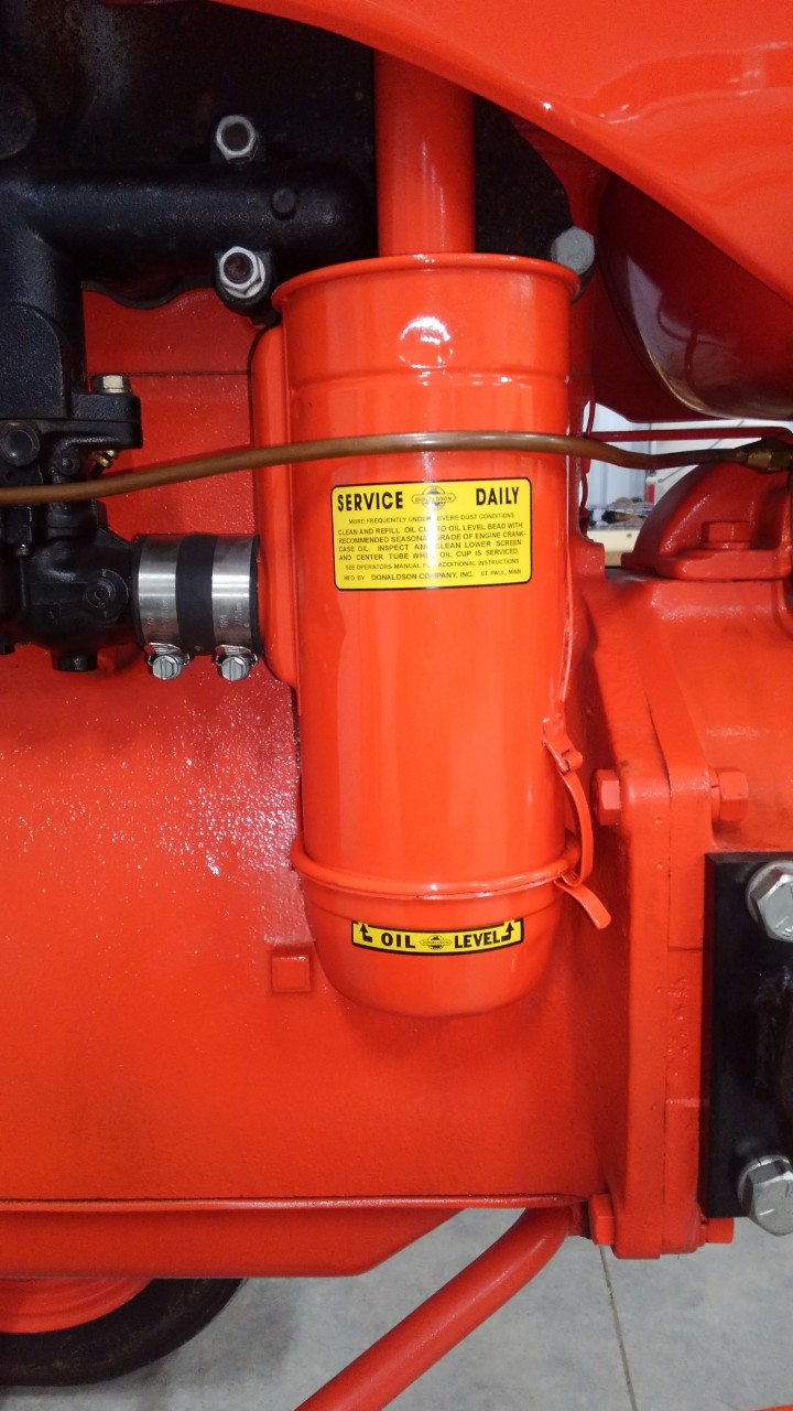 Changed out the late model black B decals for the early model blue decals and added the air filter decals. Looks a lot better. Had an engine miss, found it was crappy plug wires. Replaced them with a reproduction set from the Brillman Co, runs a lot better now (looks better to).