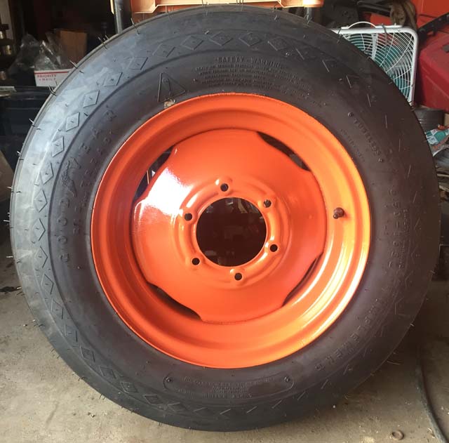 I cleaned up and painted the All-Crop rims and mounted new tires.