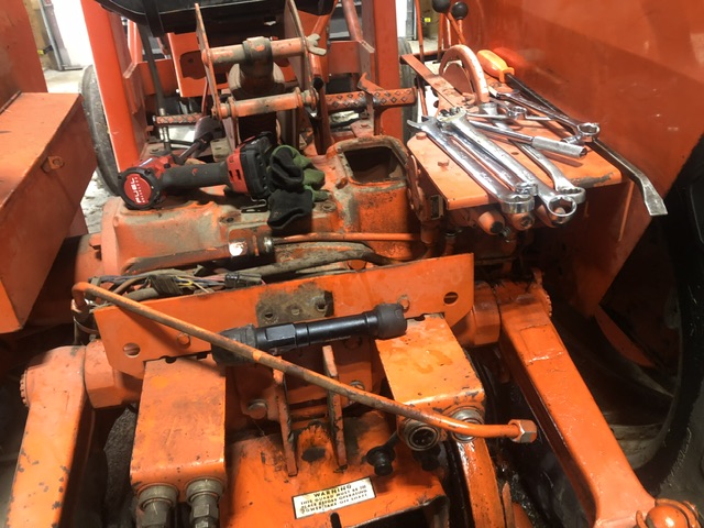 The other day I had my 170 out just for a few minutes, heard something pop and had hydraulic fluid running under the right rear. Did t have time to dig into, just backed it back in the shed. So today I dove in, looks like the hydraulic hoses going from the spool valve to the break away couplers have been rubbing on the rock shaft for the past 5/ years. And also petrified.