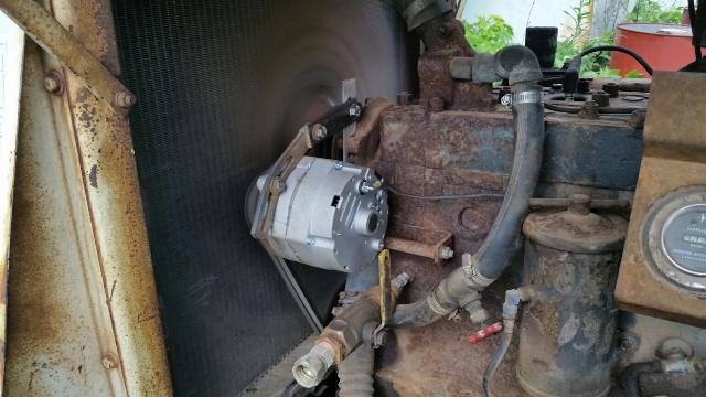 Changed out starter to M42 late Delco starter with solonoid so have a key switch start now . Also changed out generator and now using 1OSI automotive alternator single wire hookup by changing front pulley that I machined to take a B width belt . One problem that shows up is sloppy shift lever when the internal parts on lever wear . it's a easy fix by replacing the side bolts in tower and the cross pin along with the round tube the pin and bolts fit into . |