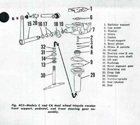 On the narrow front you have a bearing on the bottom of the pedestal and top that holds the shaft straight. On the wide front requires a top and bottom in the bolster to hold the shaft straight. If you dont put the top one in the shaft will move around and gears wont mesh right.
