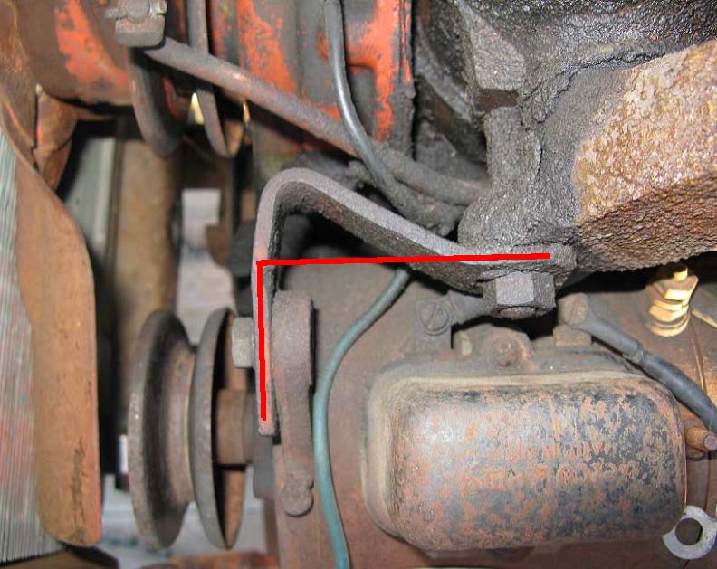 I'm surprised the upper generator bracket is attached to the exhaust manifold as shown in the picture. Is this correct? Mine was mounted just like this as shown by the "L" shape I drew in red. The ear on the exhaust manifold where this connection is made was cracked on mine. I'm not surprised. This doesn't seem like a good way to make this connection. uploads/15483/Upper_Generator_Bracket.jpg