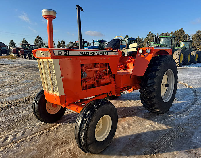 We are selling a nicely repainted D21 with 3 point hitch, a couple of 4W305 4 wheel drives, and a 220 Allis Chalmers along with 30 other low houred tractors on Dec. 30th. Attached is a flyer Call 1-701-340-5061 if you have any questions.