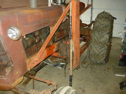 If I move the loader frames up to the front flush with the grill the rear brackets come up in front of the rear axle.  This loader came with the tractor but the fella had no idea how it attached, so after looking at a few pics on line, a friend and my 5020's loader started setting things up to see how it fit, all the other loaders I've installed went under the rear axle so I did a bad thing and "assumed" this one did as well.  so now I'm wondering if I should slide it up to the front and redo the bracket to the rear axle.