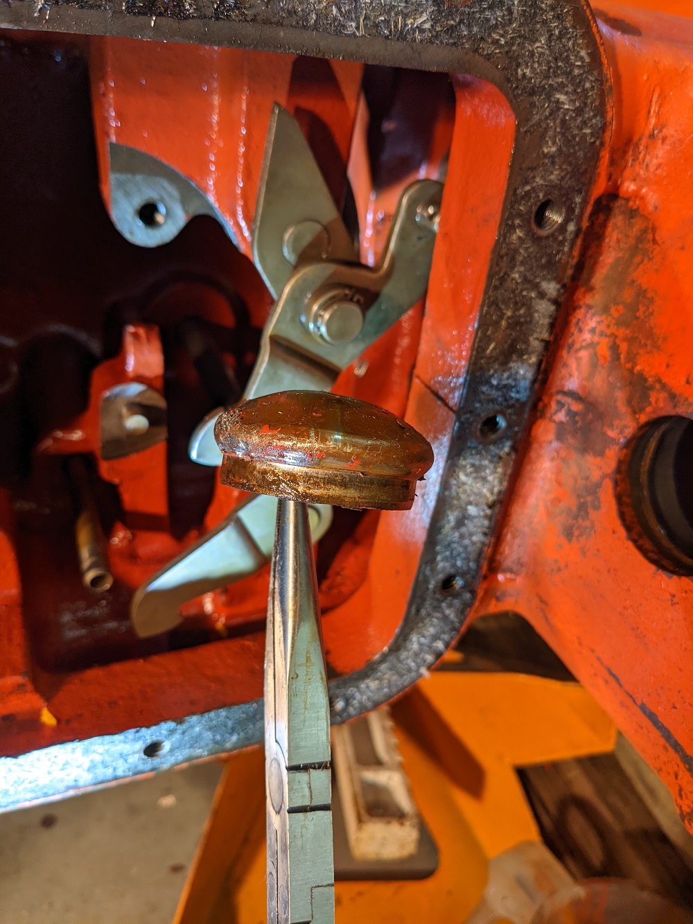 Anybody got advice on the best way to remove, then re-install, the plug on the front of the intermediate shaft? Service manual says that it just pops out and once removed you have to take a nut off the front of the intermediate shaft. There's not really a good way to get to it. Looks like I may destroy it taking it off and wasn't sure if these were a one time use item. See pic below.