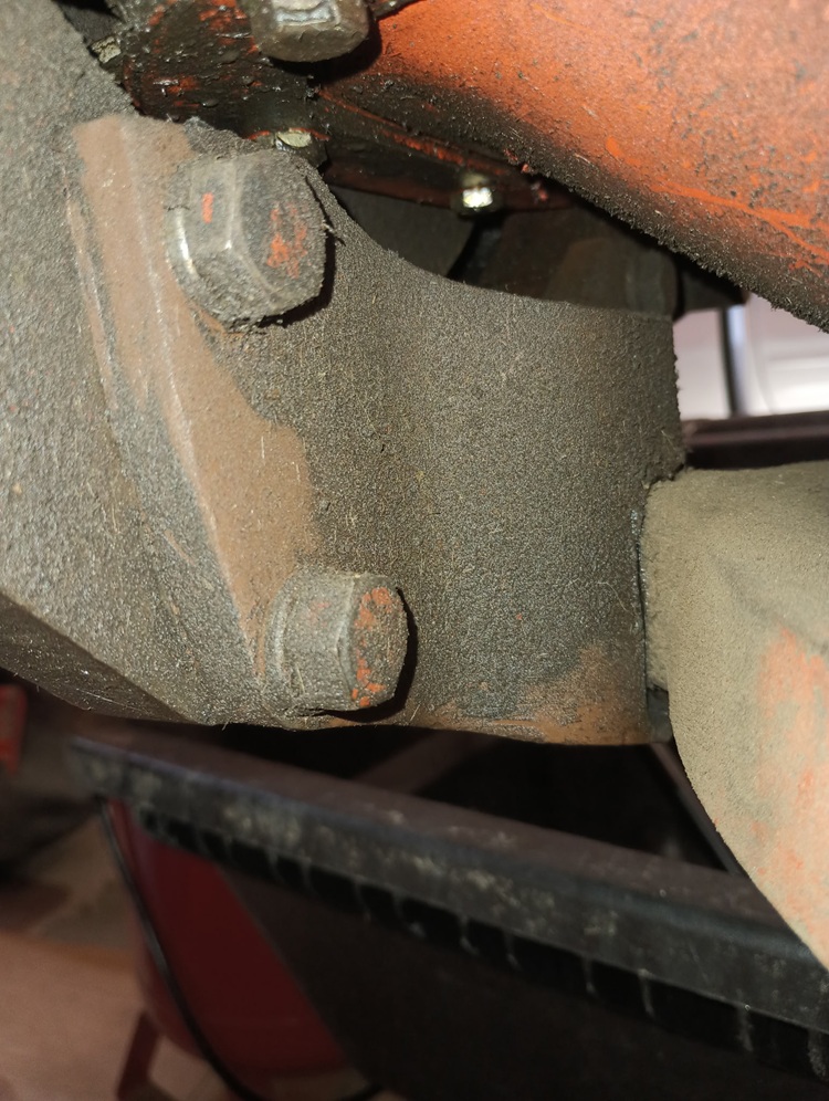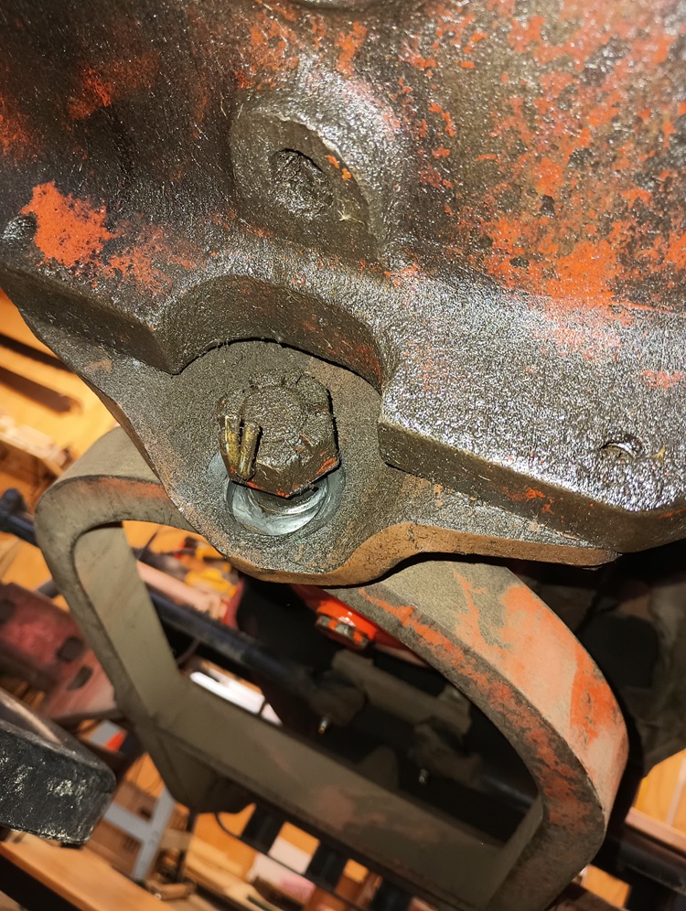 The previous owner of our D15 Series 1 had four nuts as spacers positioning the wide front axle pivot bracket closer to the front of the tractor (away from the housing). I searched the D15 AGCO parts book online and cannot find the pivot bracket I have so I'm not sure I have the correct bracket. If I do have the correct bracket, I'm not sure if there was a plate or factory spacer that got replaced by the previous owner with nuts. The biggest issue with this is the little amount of threads that go through the pivot bracket do not allow the castle nut to thread on enough to install a cotter pin. Any thoughts on if this is the correct bracket for this tractor and if I'm missing a part that the nut spacers replaced? Photos of the bracket on the tractor and off are below. Thank you!