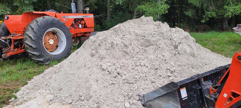 Must be Fine Lime screenings. Here they are $18/ton Plus delivery which can range from $3-9/ton depending on which quarry they come from. Appears a 20-22t pile, be around $500 here.