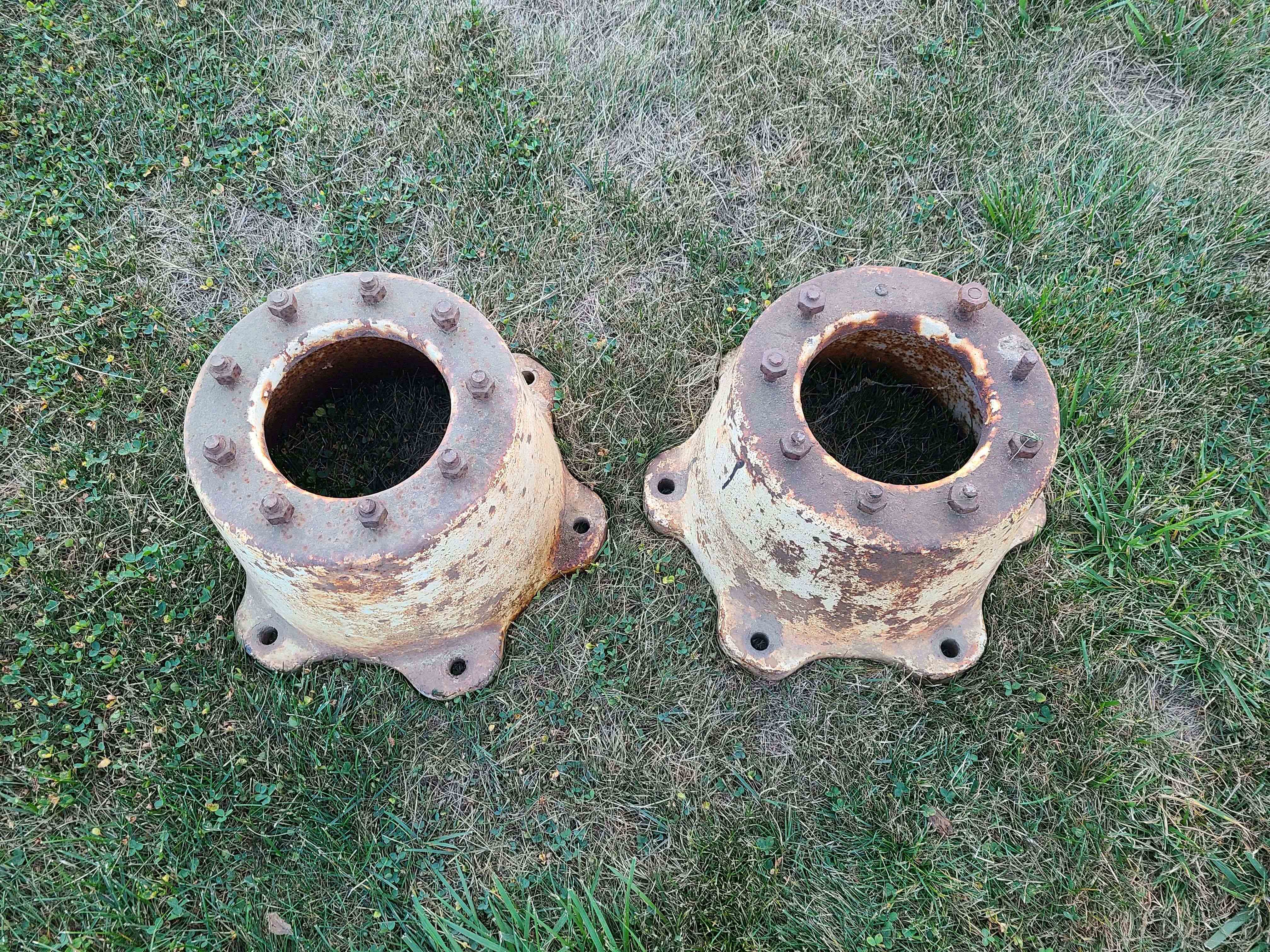 For sale is a set of flower pot dual hubs. No missing ears, one has a broken stud, remaining studs may need to be replaced. $250 for the set.