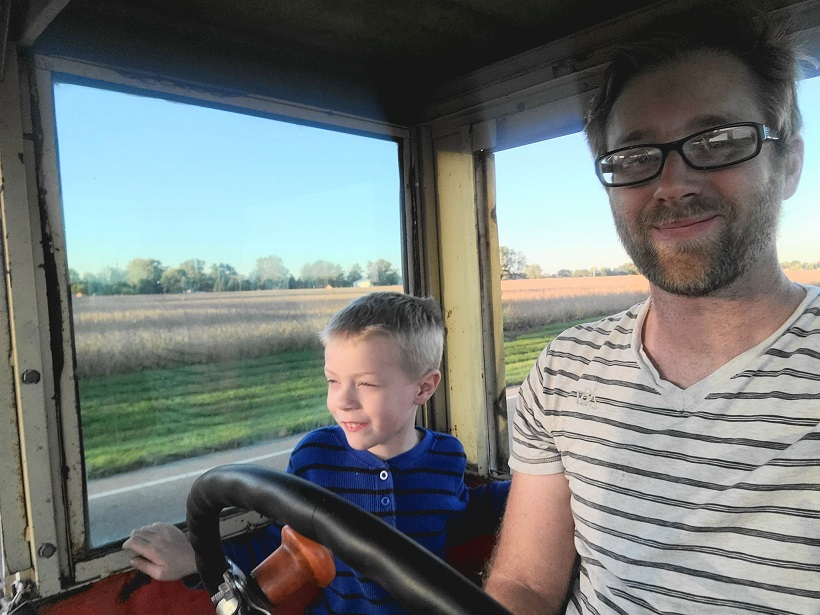 Congrats on a great looking setup. That WD has combine wheels on the rear instead of the traditional Power Adjust Wheels (PAWs). I think it's cool for your son to get dropped off too! Have you promised him it'll be HIS tractor in a few years? LOL